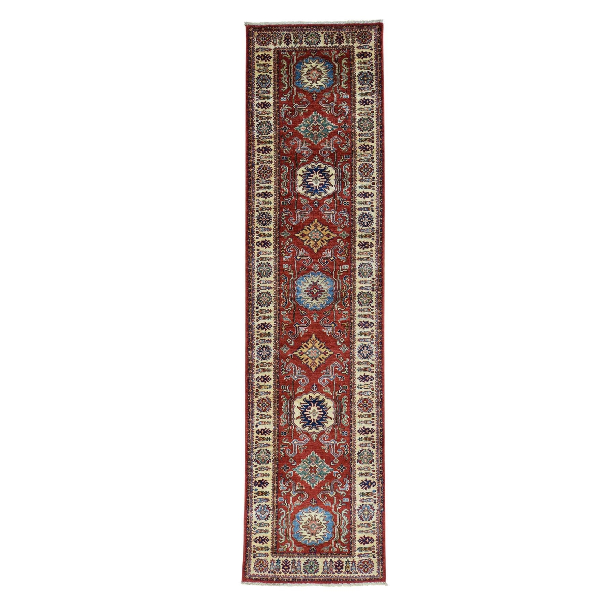 Hand-knotted super kazak red runner oriental carpet