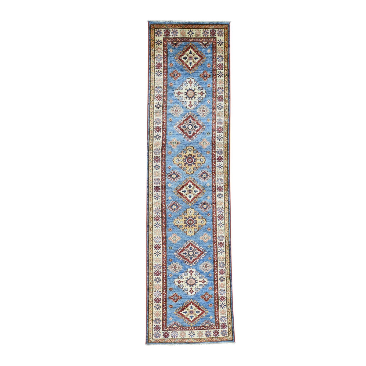 1800 Get A Rug sh31048 2 ft. 7 in. x 10 ft. Hand Knotted Super Kazak Runner Tribal Design Oriental Rug Blue