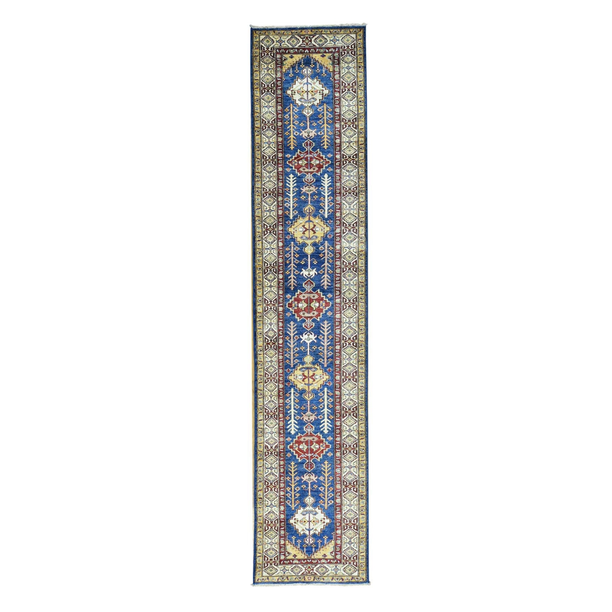 1800 Get A Rug sh31059 2 ft. 8 in. x 12 ft. 9 in. Hand Knotted Super Kazak Runner Tribal Design Oriental Rug Blue
