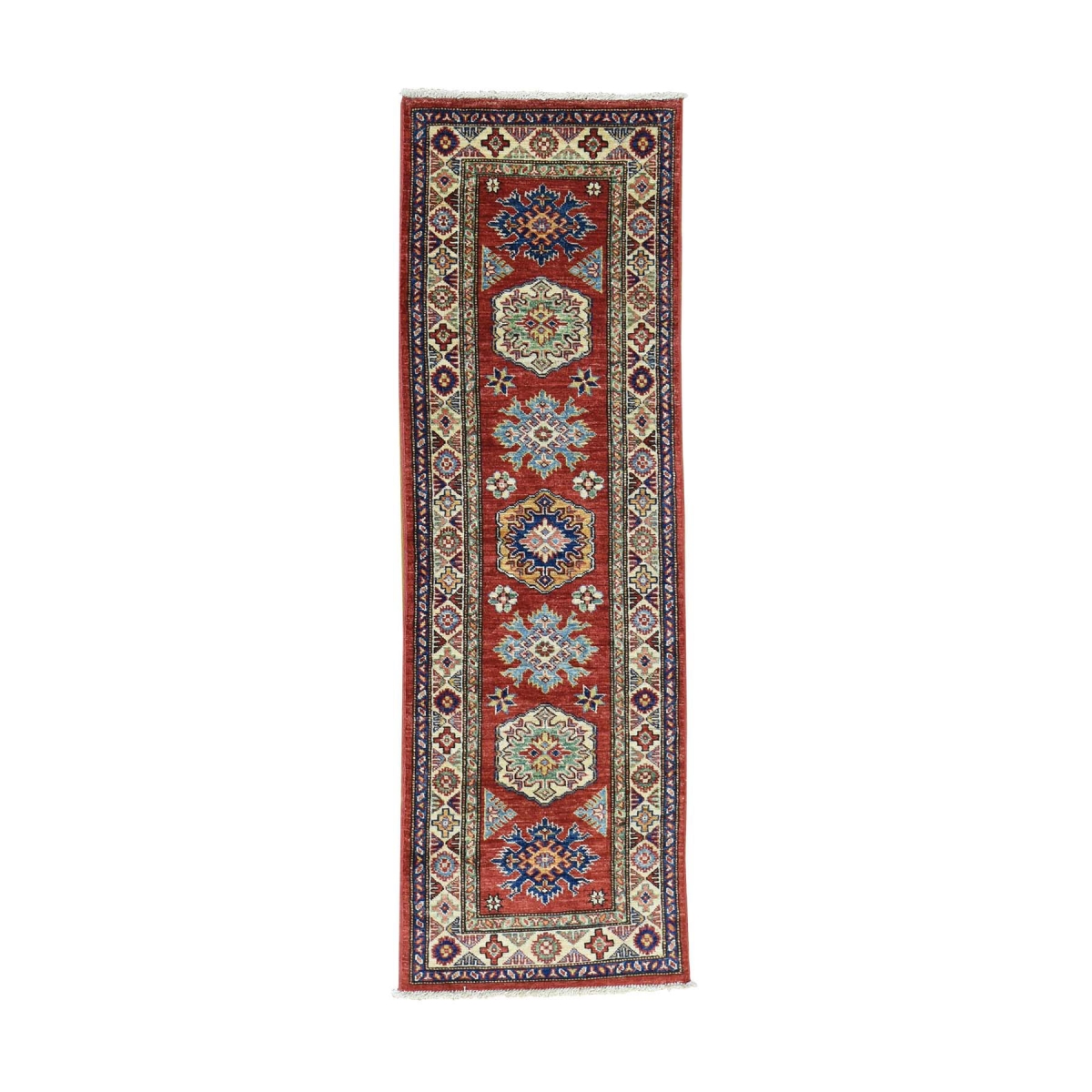 1800 Get A Rug sh31064 2 ft. x 6 ft. 2 in. Hand Knotted Geometric Design Super Kazak Narrow Runner Rug Red