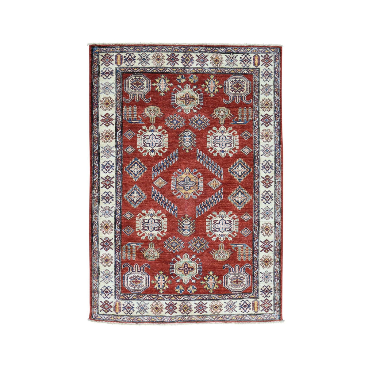 1800 Get A Rug sh31101 4 ft. 2 in. x 6 ft. Hand Knotted Super Kazak Pure Wool Geometric Design Oriental Rug Red