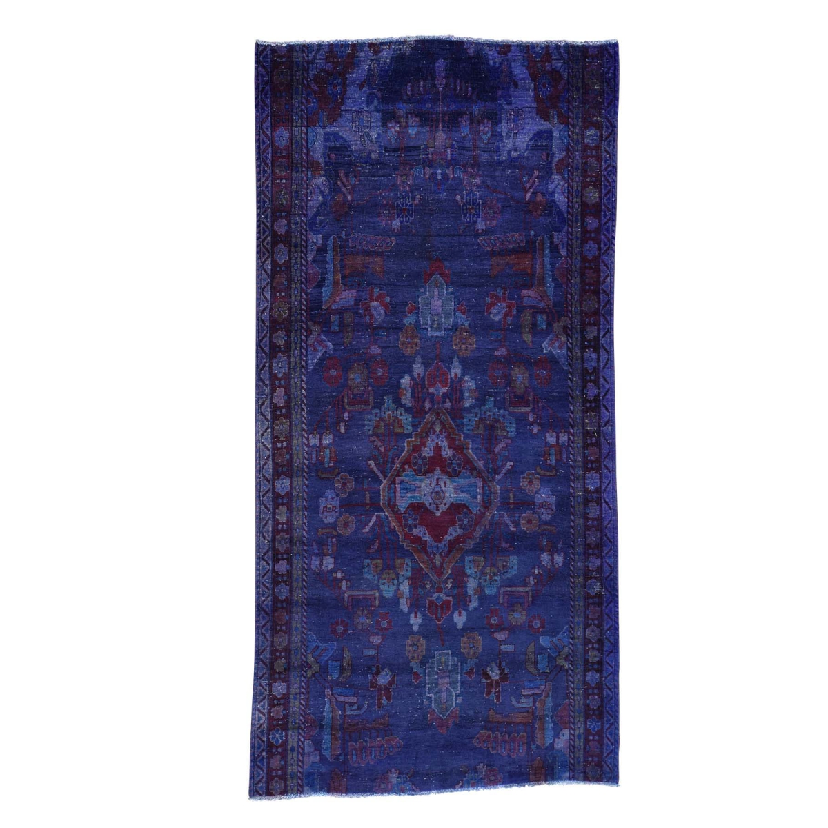 1800 Get A Rug sh31147 4 ft. x 8 ft. 3 in. Hand Knotted Persian Hamadan Wide Runner Overdyed Rug Blue
