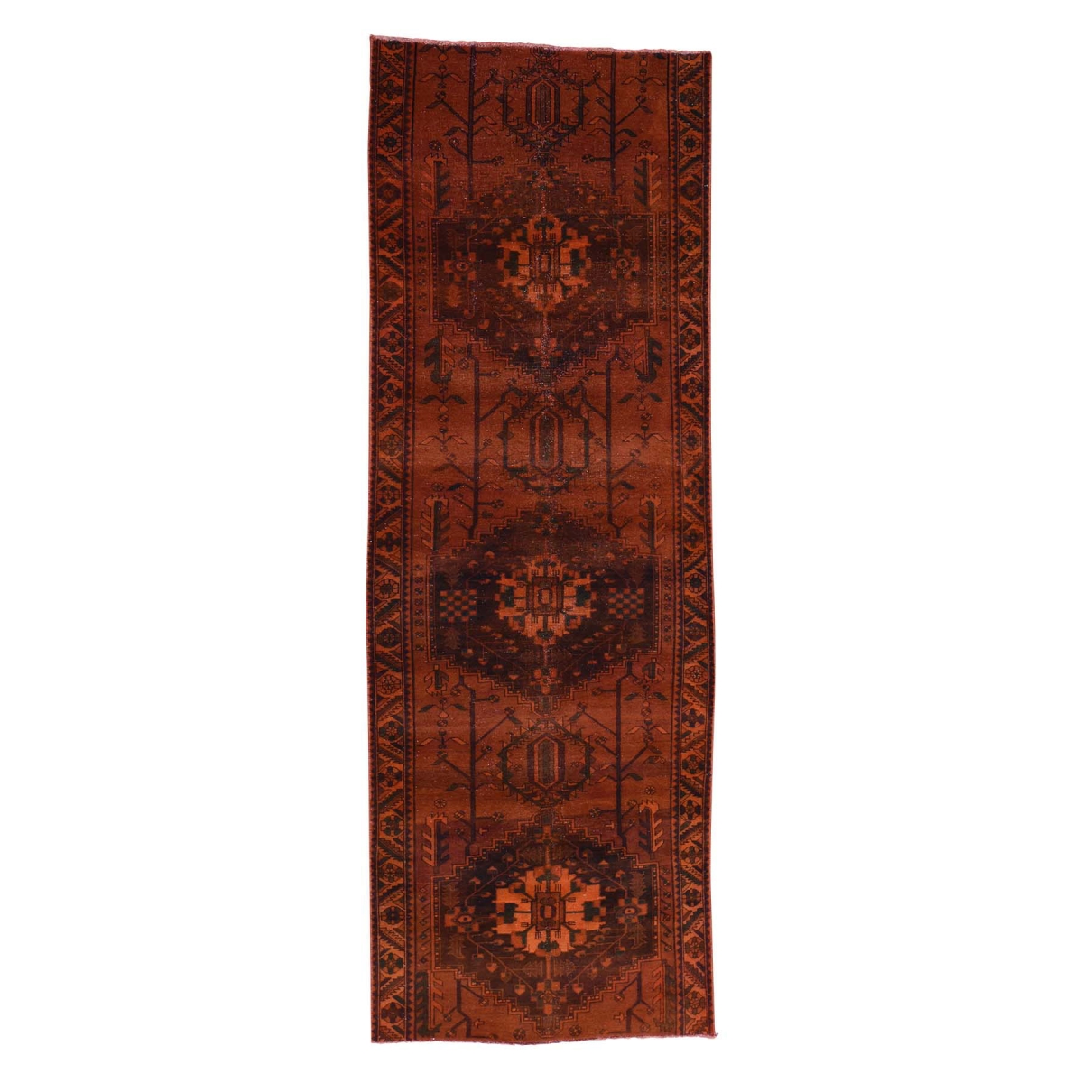 1800 Get A Rug sh31162 3 ft. 6 in. x 10 ft. Hand Knotted Wide Runner Overdyed Persian Mosel Oriental Rug Orange
