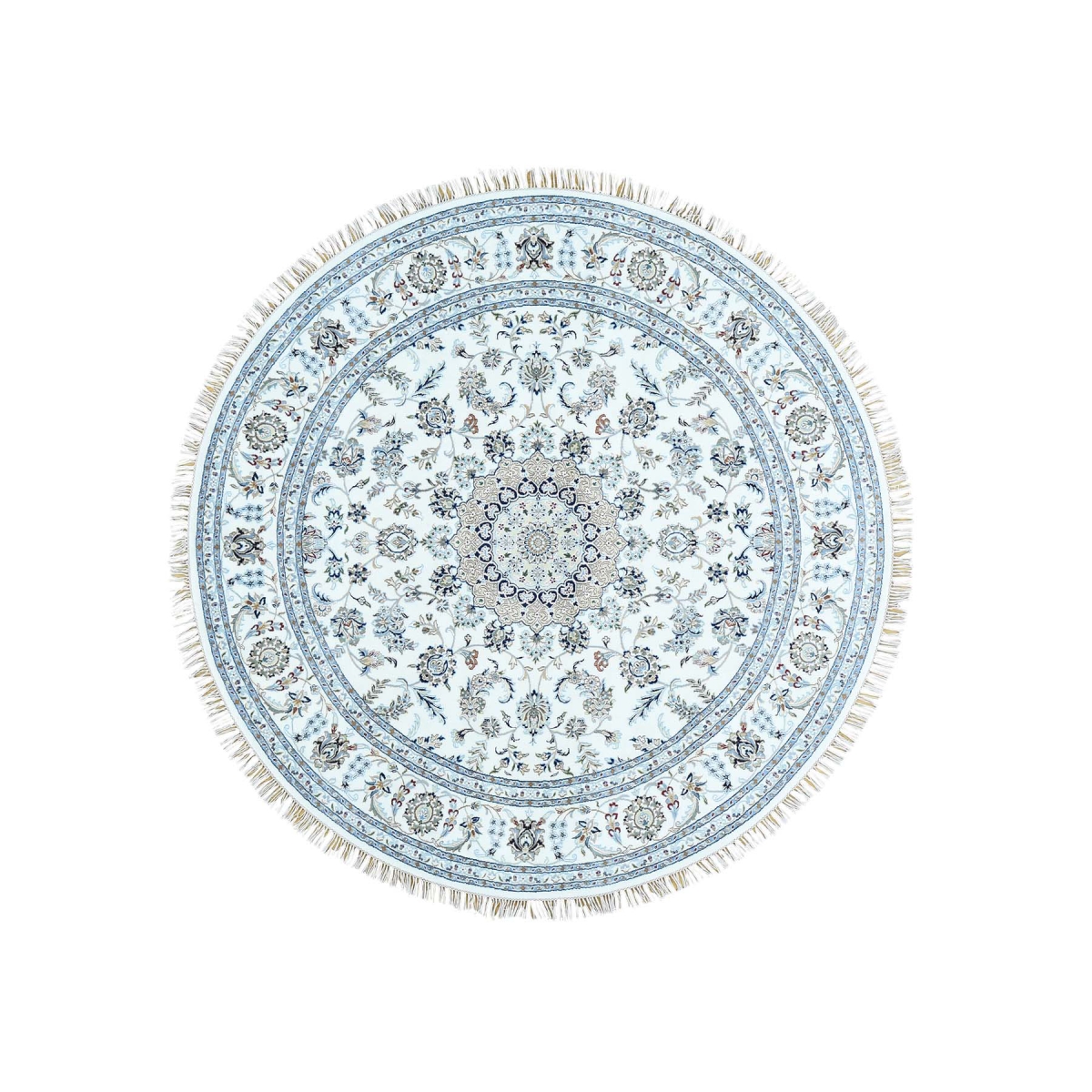 Hand-knotted round nain 300 kpsi wool and silk oriental rug
