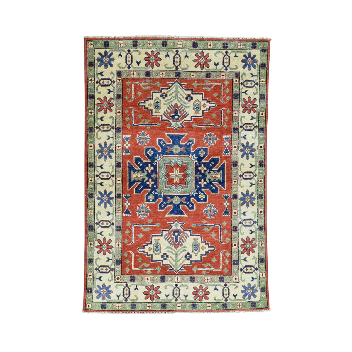 1800 Get A Rug sh31226 4 ft. 1 in. x 6 ft. 1 in. Hand Knotted Pure Wool Red Kazak Tribal Design Oriental Rug Red