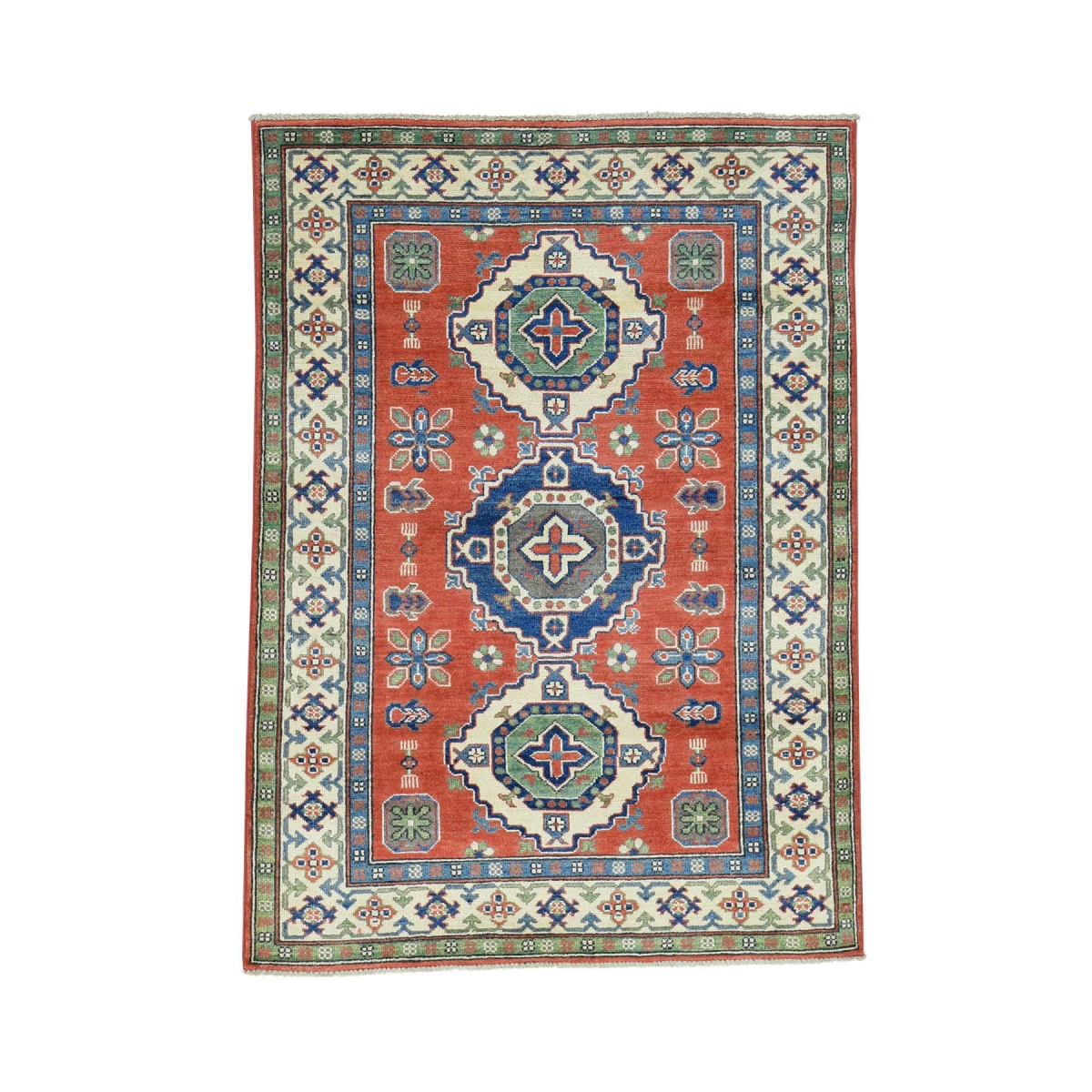 1800 Get A Rug sh31230 4 ft. x 5 ft. 6 in. Hand Knotted Geometric Design Kazak Pure Wool Oriental Rug Red