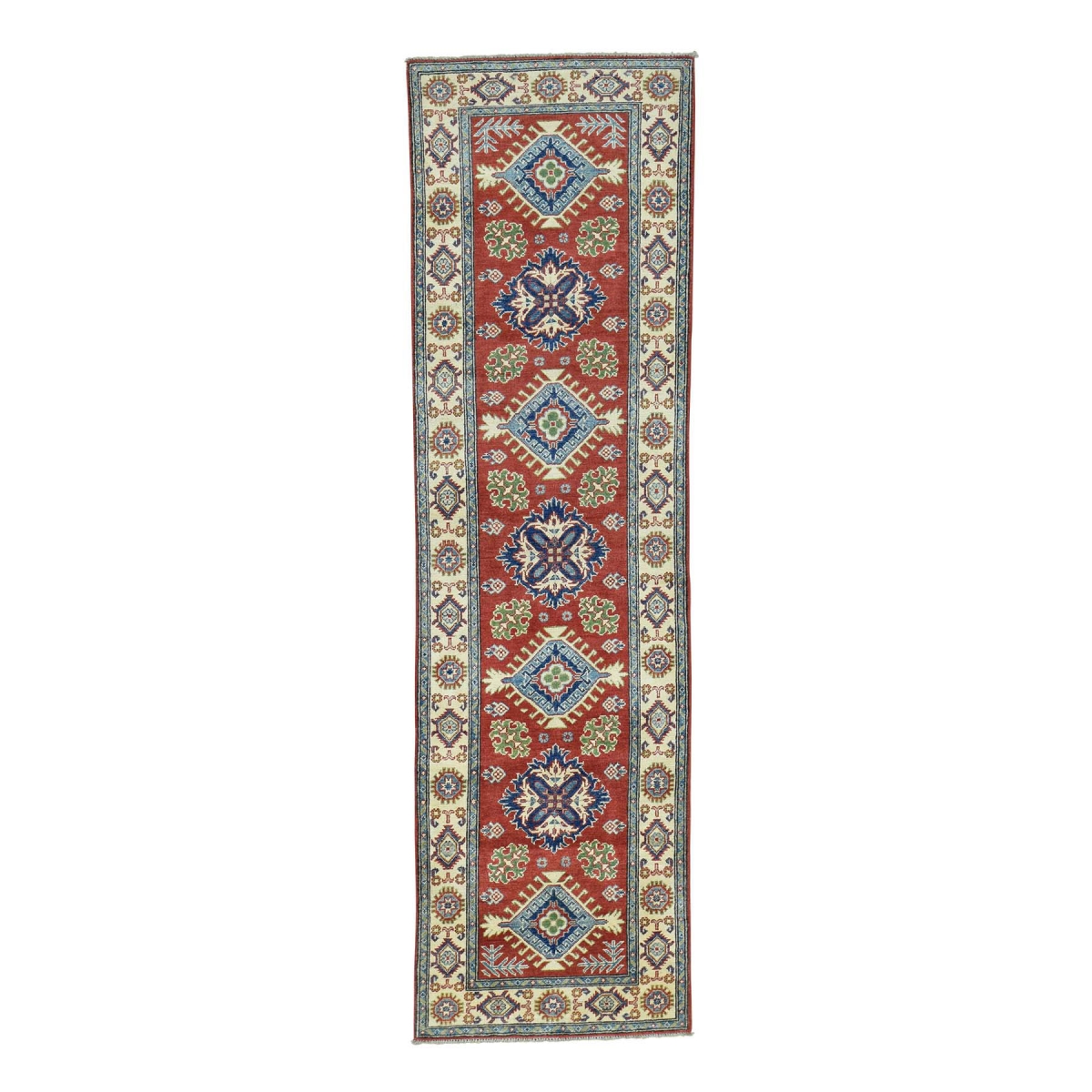 Hand-knotted red kazak geometric design runner oriental rug