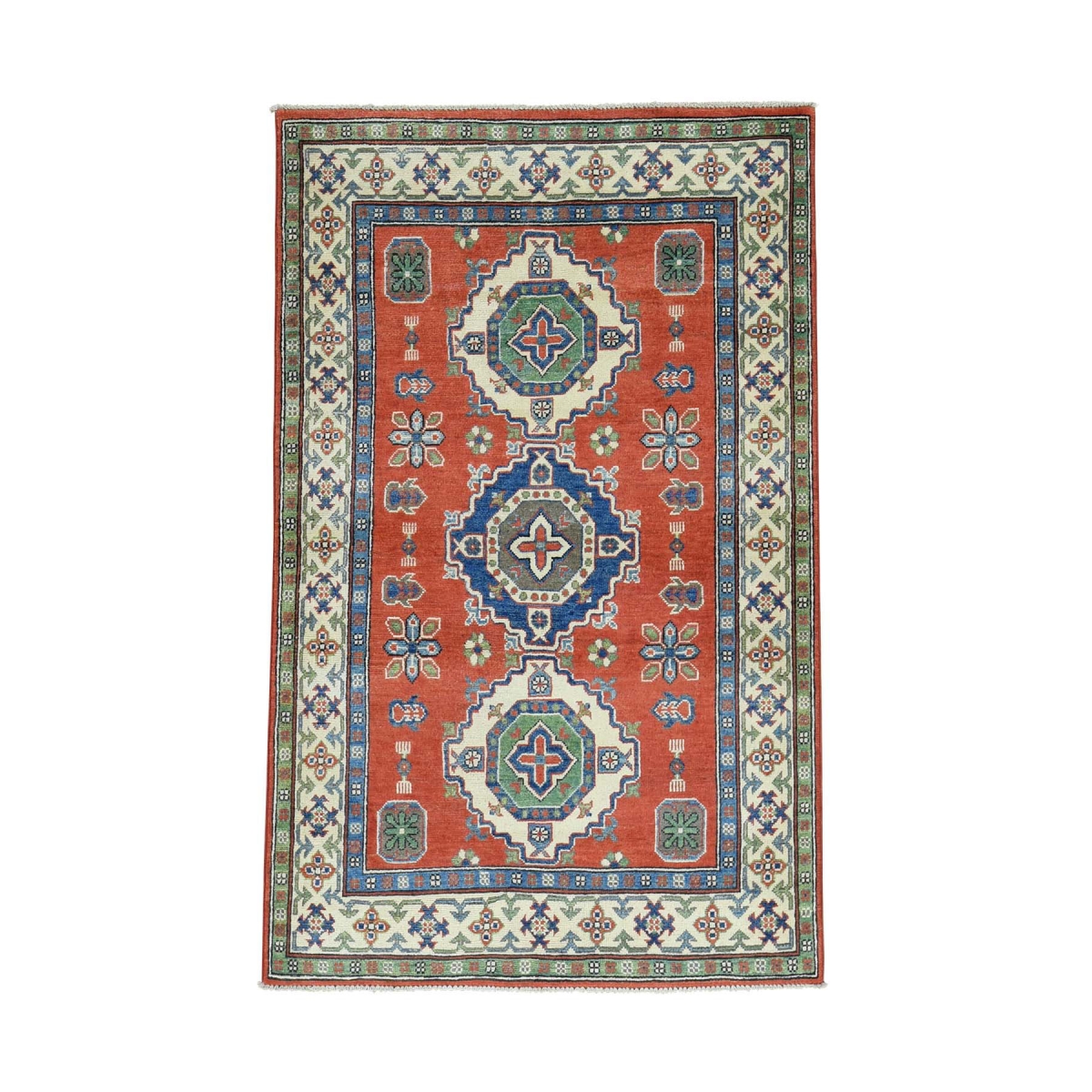 1800 Get A Rug sh31264 3 ft. 8 in. x 6 ft. Hand Knotted Red Kazak Tribal Design Pure Wool Oriental Rug Red