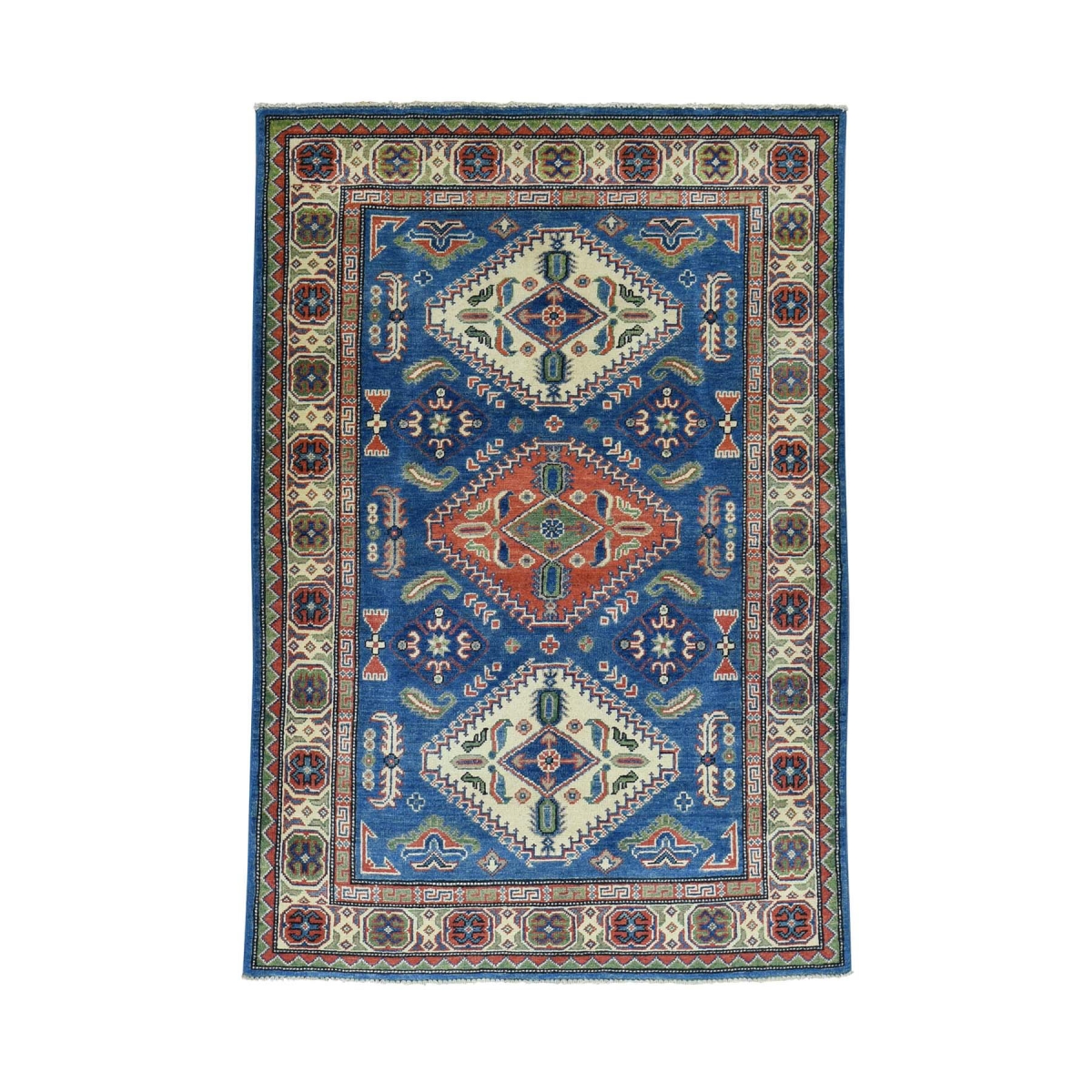 1800 Get A Rug sh31274 4 ft. x 5 ft. 9 in. Hand Knotted Kazak 100 Percent Wool Oriental Rug Denim Blue