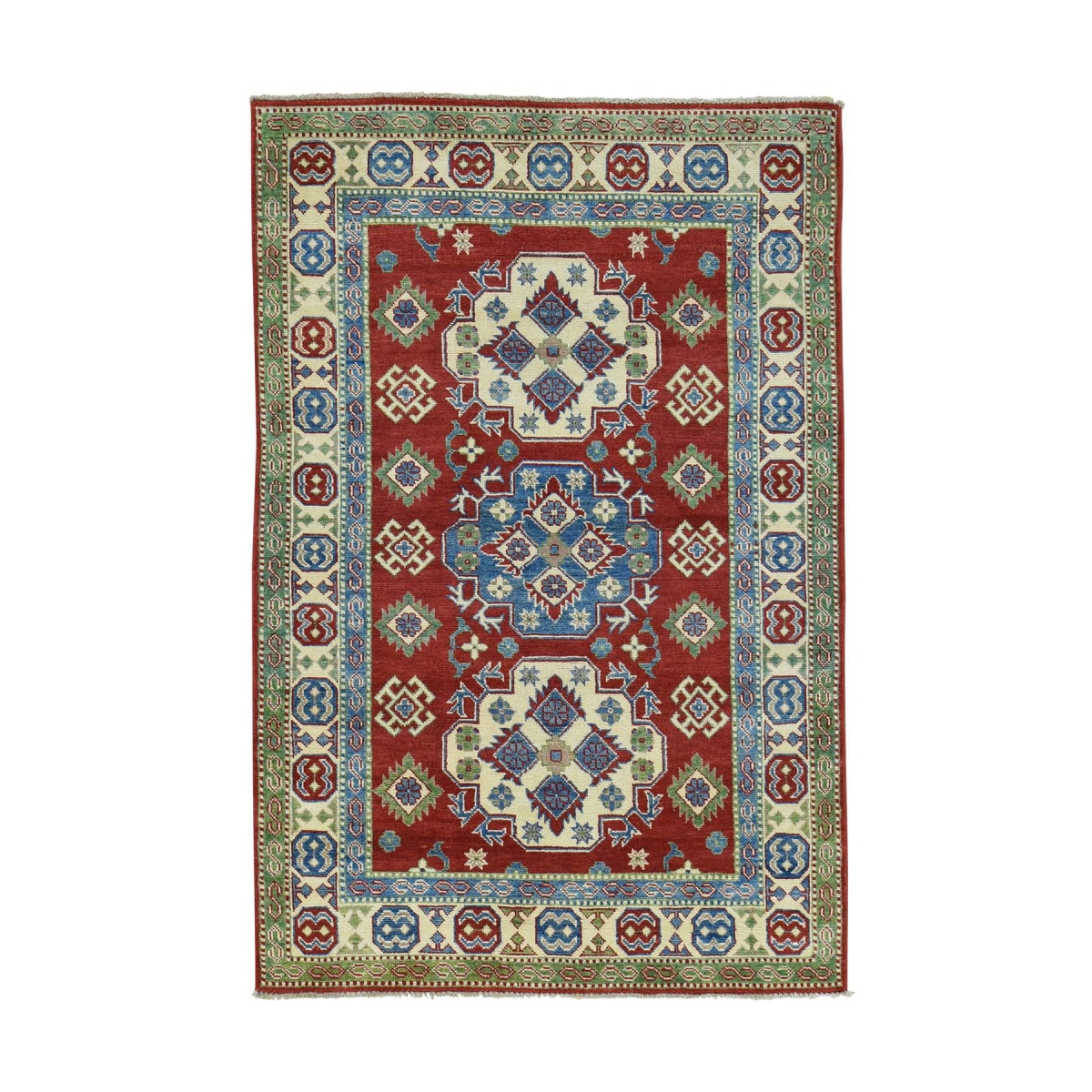 1800 Get A Rug sh31276 4 ft. x 6 ft. Hand Knotted Kazak Tribal and Geometric Design Oriental Rug Red