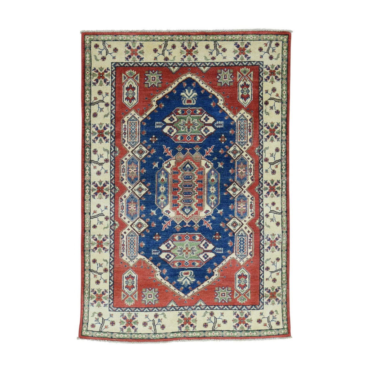 1800 Get A Rug sh31290 4 ft. 1 in. x 6 ft. Pure Wool Tribal Design Kazak Hand Knotted Oriental Rug Blue
