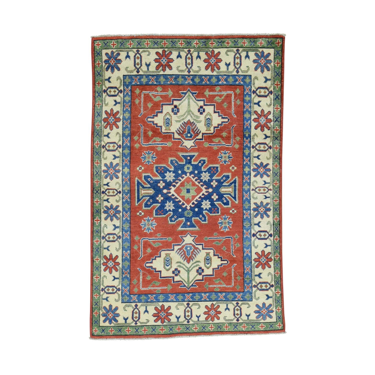 1800 Get A Rug sh31293 4 ft. x 6 ft. 2 in. Hand Knotted Tribal and Geometric Design Kazak Oriental Carpet Red