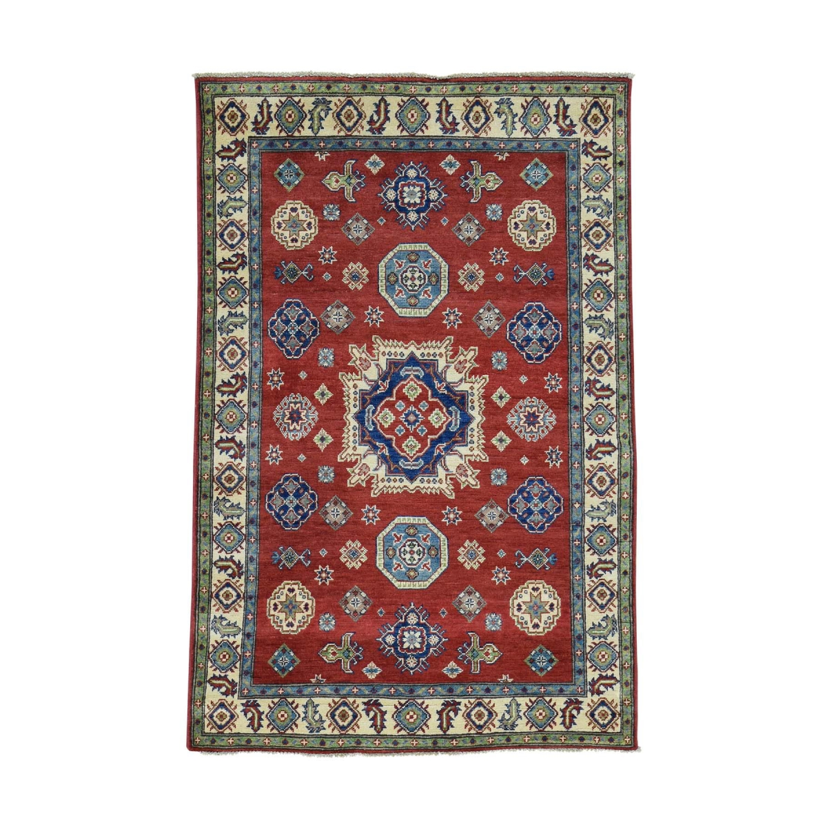1800 Get A Rug sh31296 4 ft. x 6 ft. 2 in. Tribal Kazak Hand Knotted Pure Wool Oriental Carpet Red