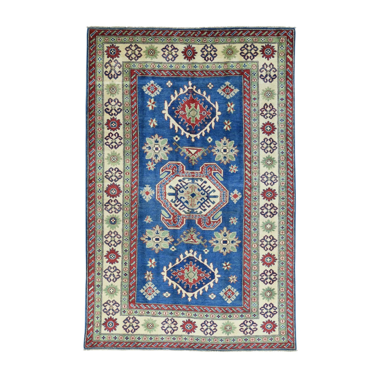 1800 Get A Rug sh31300 5 ft. 10 in. x 9 ft. Pure Wool Geometric Design Kazak Hand Knotted Oriental Rug Blue