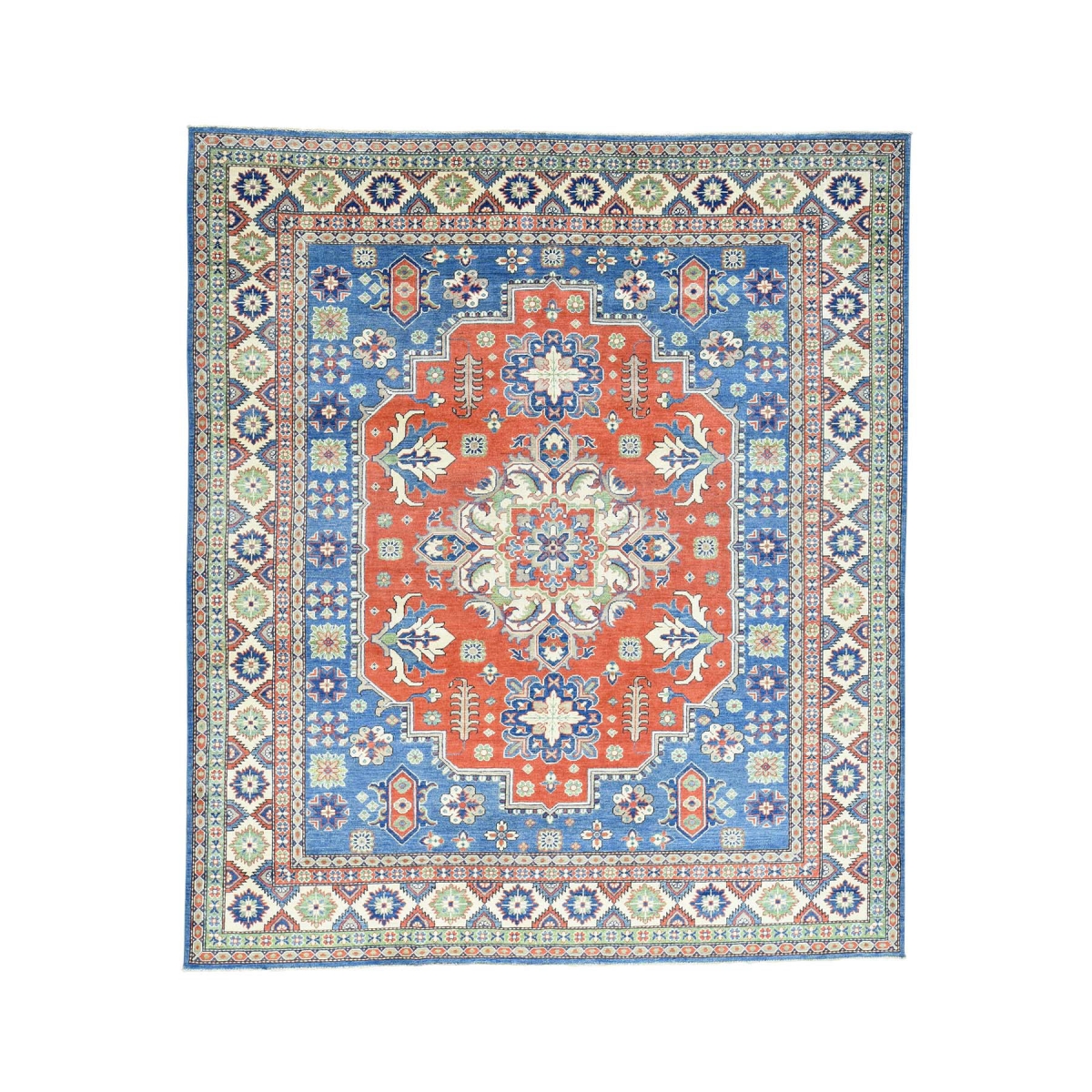 Hand-knotted red kazak tribal design 100 percent wool rug