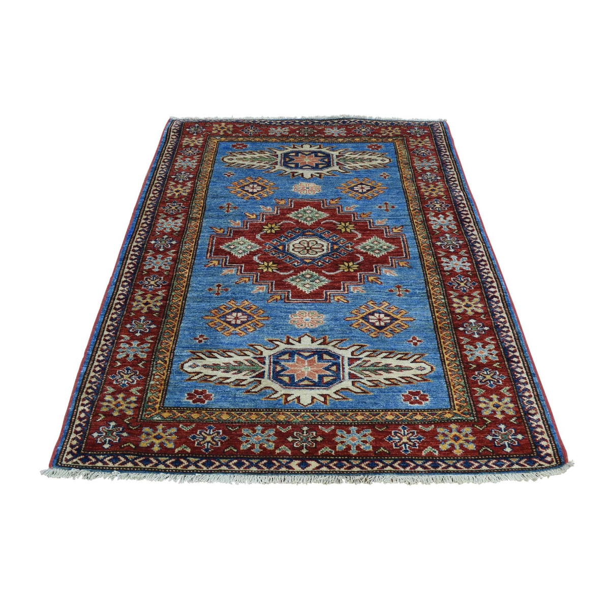 1800 Get A Rug sh31388 3 ft. 3 in. x 4 ft. 8 in. Hand Knotted Super Kazak Geometric Design Oriental Rug Blue