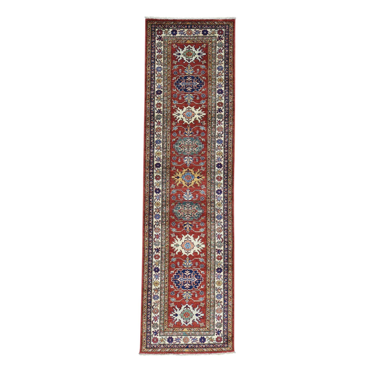 Hand-knotted super kazak geometric design runner oriental rug