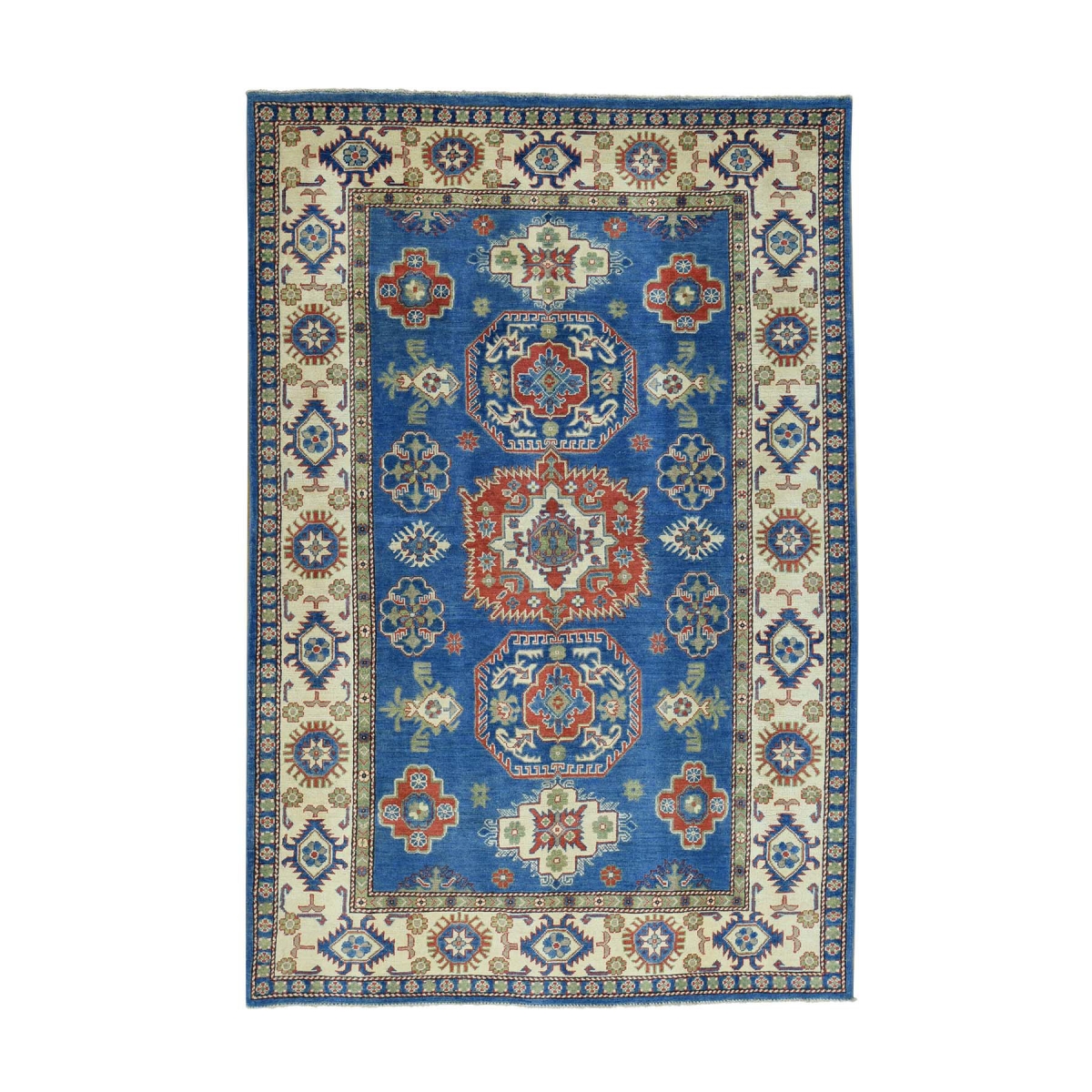 1800 Get A Rug sh31424 5 ft. 10 in. x 8 ft. 9 in. Hand Knotted Pure Wool Kazak Geometric Design Oriental Rug Blue