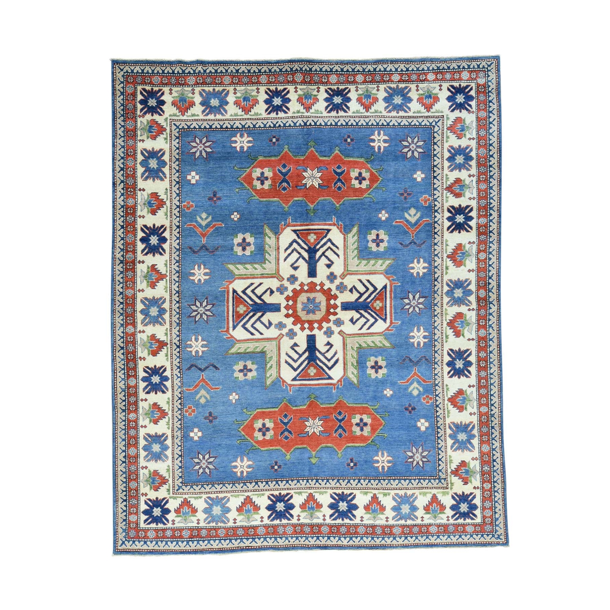 1800 Get A Rug sh31431 8 ft. x 10 ft. Hand Knotted Kazak Tribal Design Pure Wool Oriental Carpet Blue
