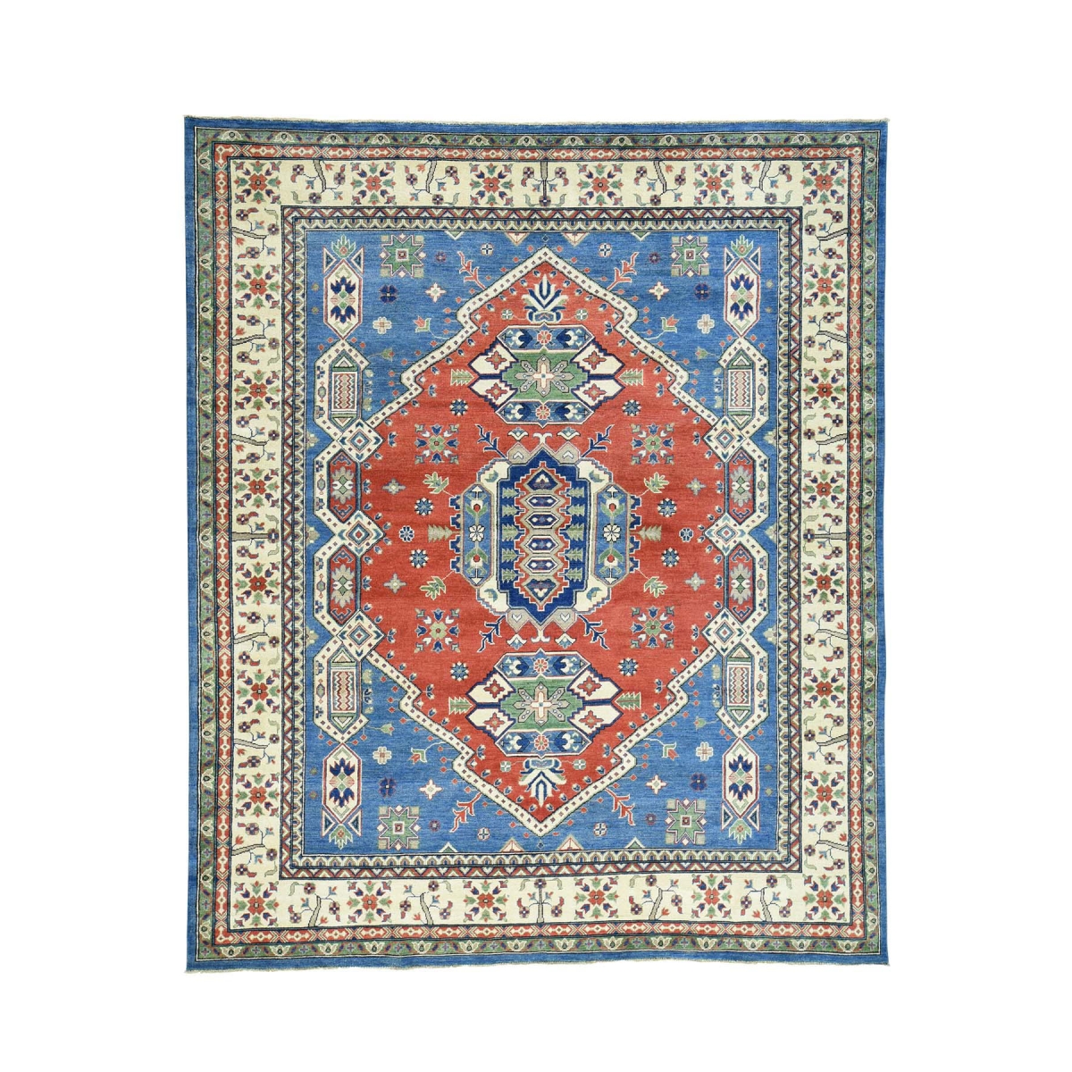 Pure wool hand-knotted tribal design kazak oriental blue rug
