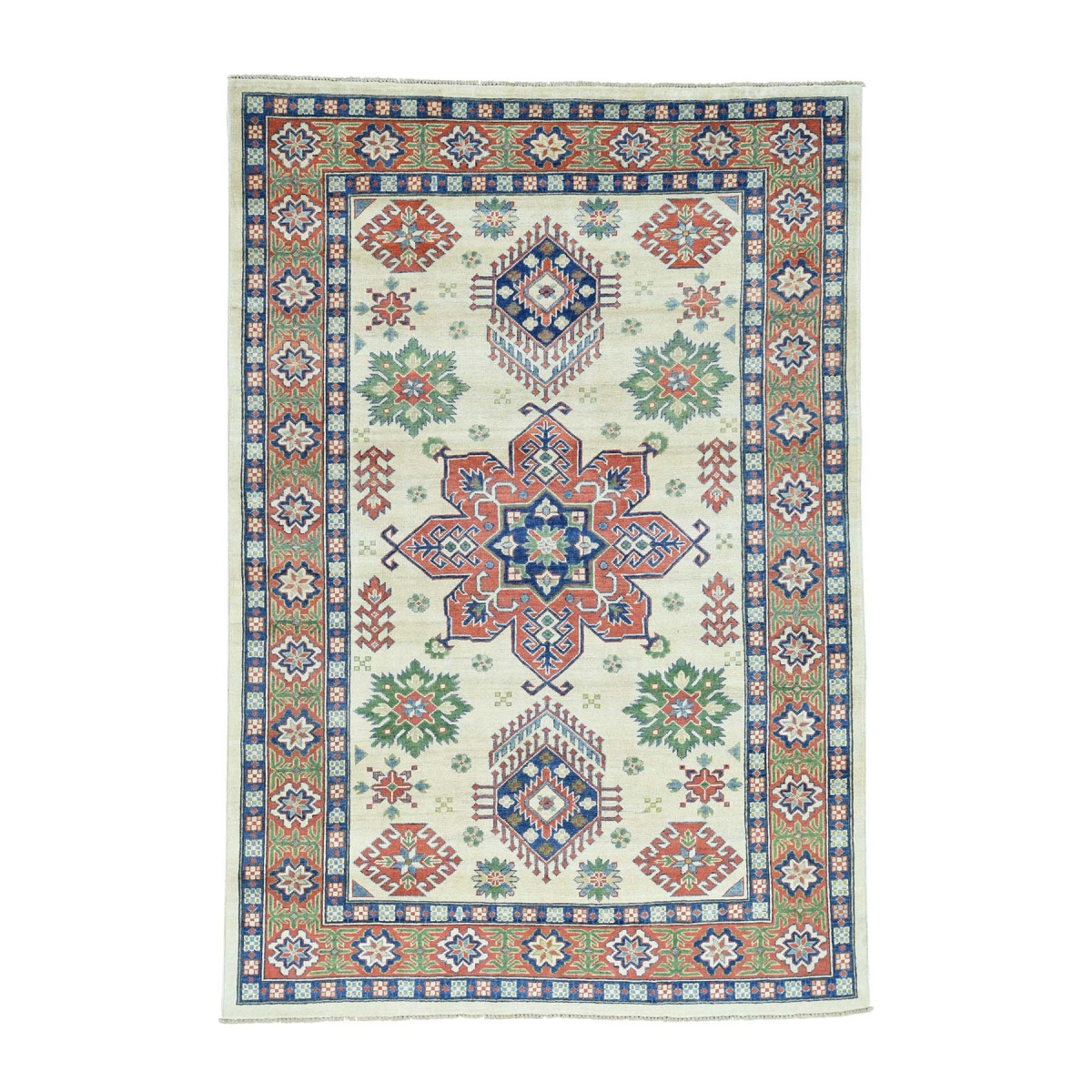 1800 Get A Rug sh31482 5 ft. 9 in. x 8 ft. 6 in. 100 Percent Wool Hand Knotted Geometric Design Kazak Carpet Ivory