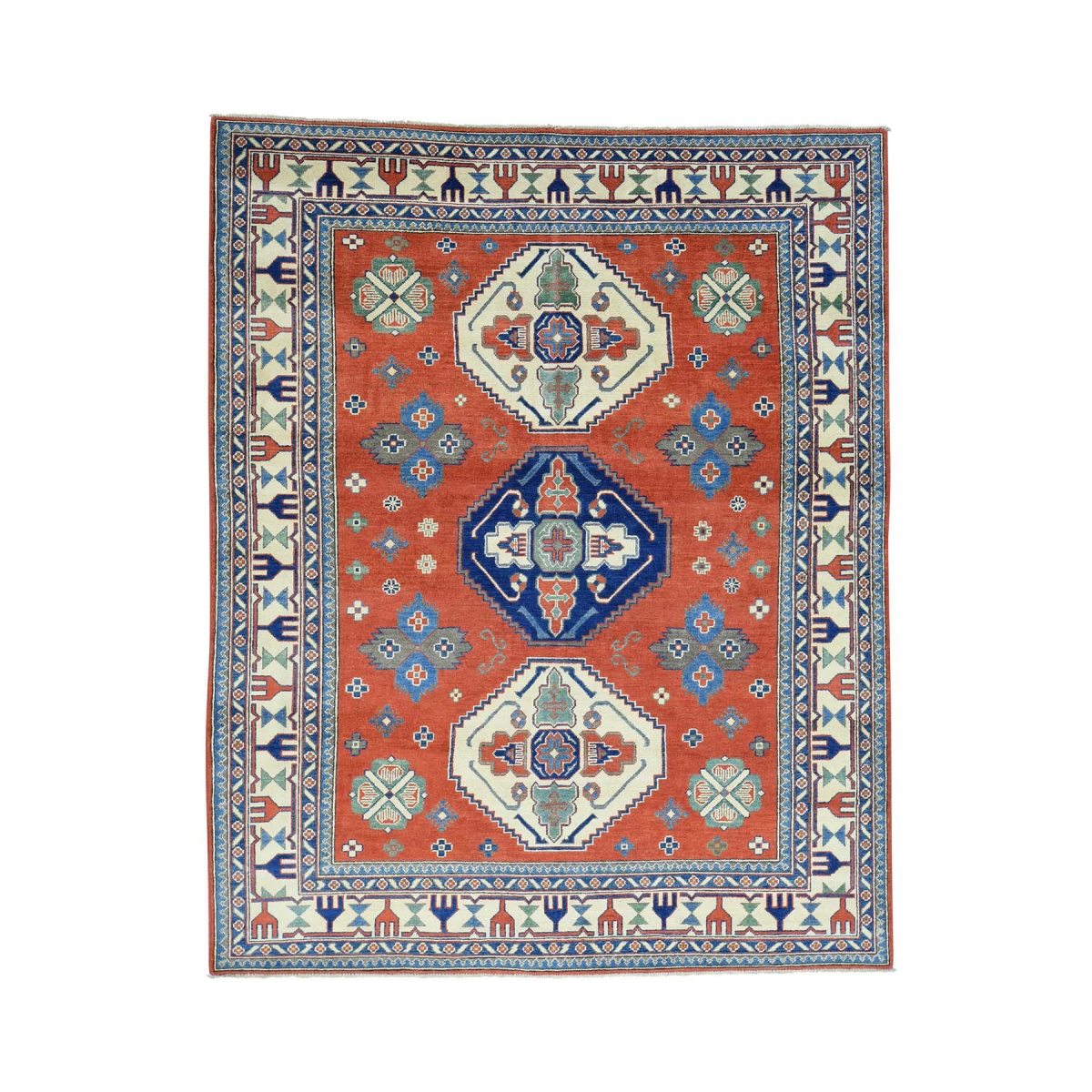 1800 Get A Rug sh31489 6 ft. 9 in. x 8 ft. 4 in. Hand Knotted Kazak Tribal Design 100 Percent Wool Oriental Rug Red