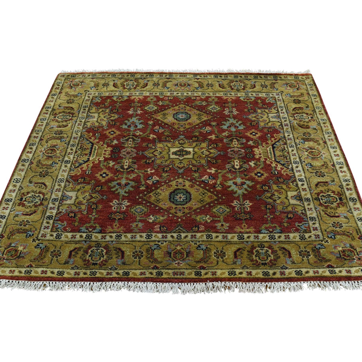 1800 Get A Rug sh31506 4 ft. x 4 ft. Hand Knotted Square Karajeh 100 Percent Wool Oriental Carpet Red