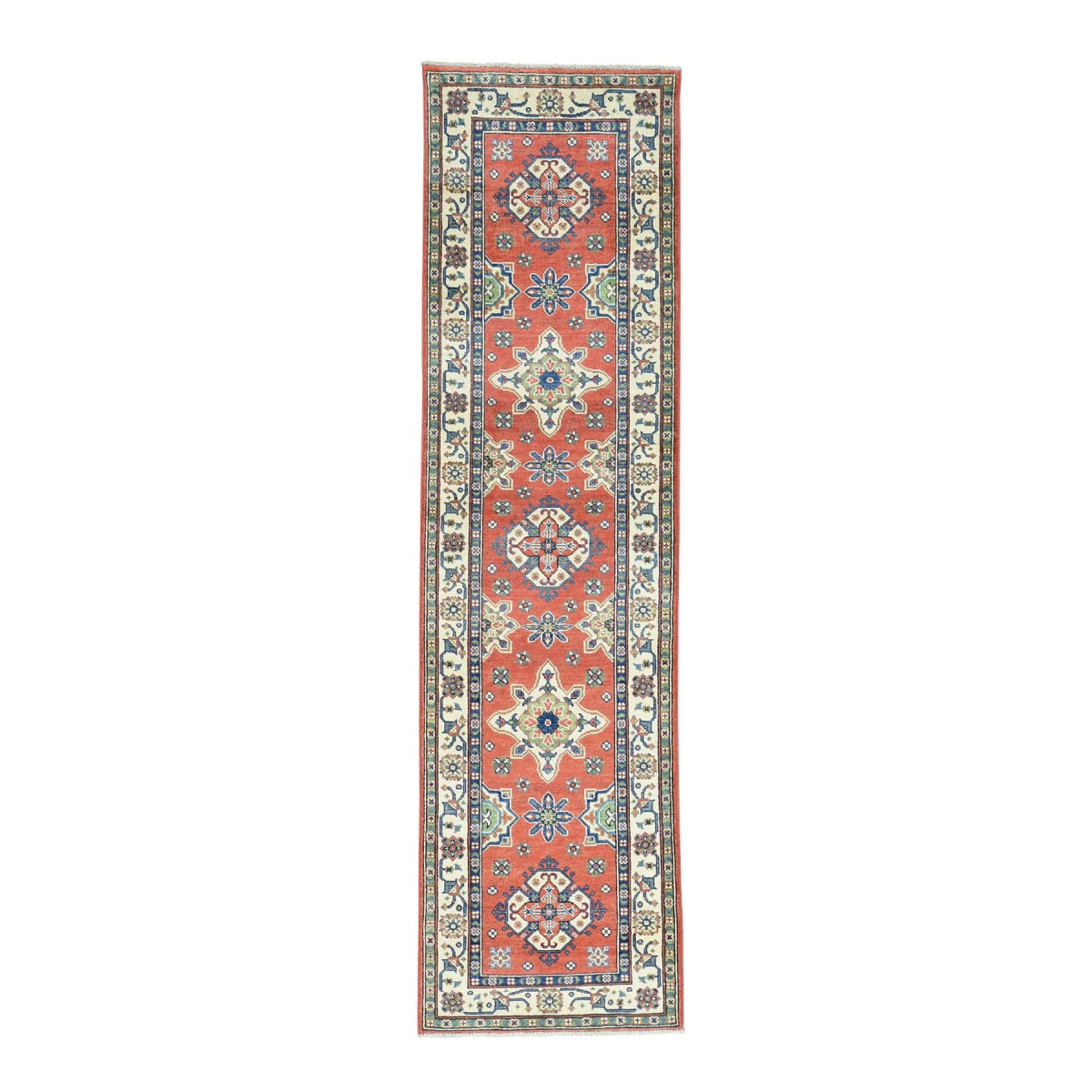 1800 Get A Rug sh31526 2 ft. 6 in. x 9 ft. 7 in. Geometric Design Kazak Hand Knotted Oriental Runner Carpet Red
