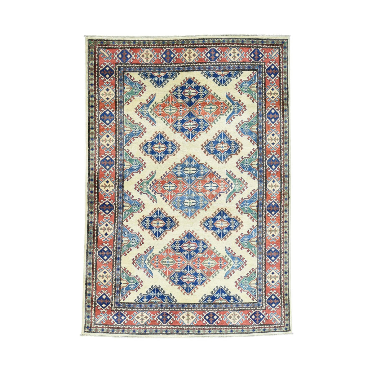 1800 Get A Rug sh31533 5 ft. 5 in. x 8 ft. Pure Wool Tribal and Geometric Design Kazak Hand Knotted Rug Ivory
