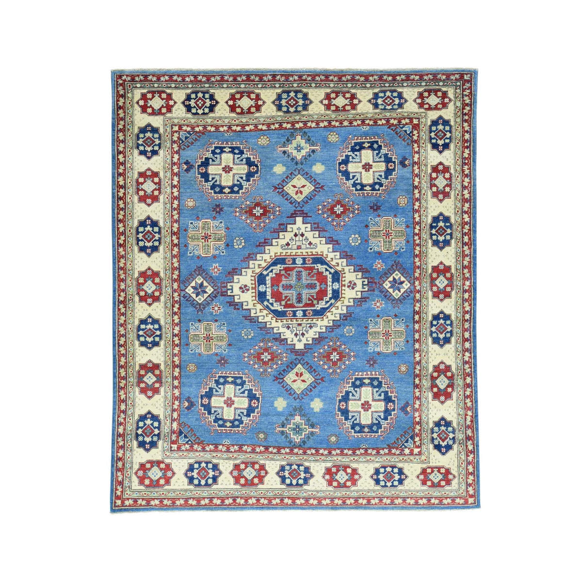 1800 Get A Rug sh31540 6 ft. 8 in. x 8 ft. 1 in. Hand Knotted Pure Wool Kazak Tribal Design Oriental Rug Blue