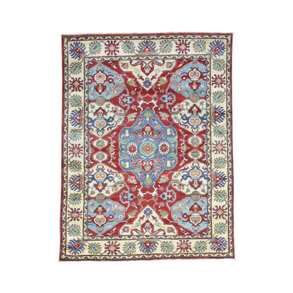 1800 Get A Rug sh31549 4 ft. 10 in. x 6 ft. 6 in. Geometric Design Hand Knotted Pure Wool Kazak Oriental Rug Red