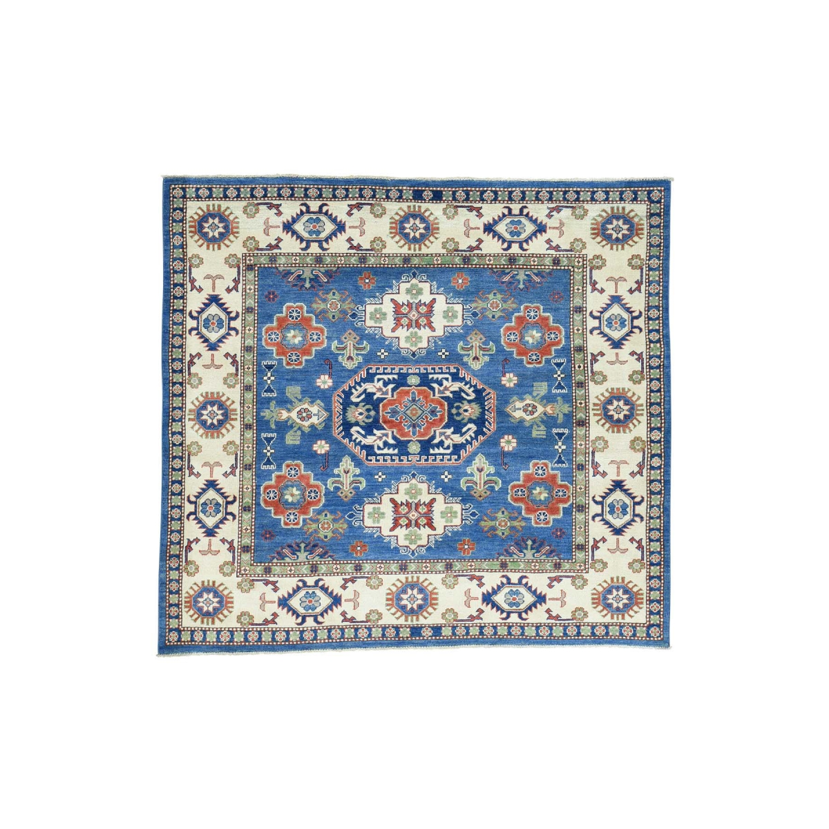 Pure wool hand-knotted geometric design kazak squarish carpet