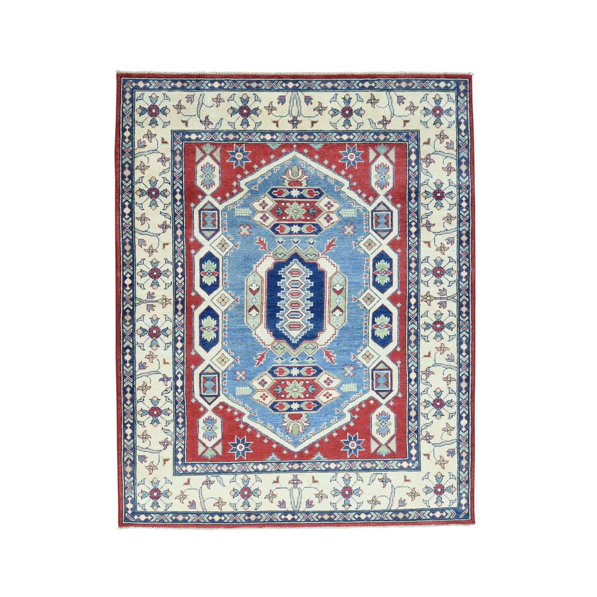 Hand- knotted geometric design kazak pure wool oriental rug