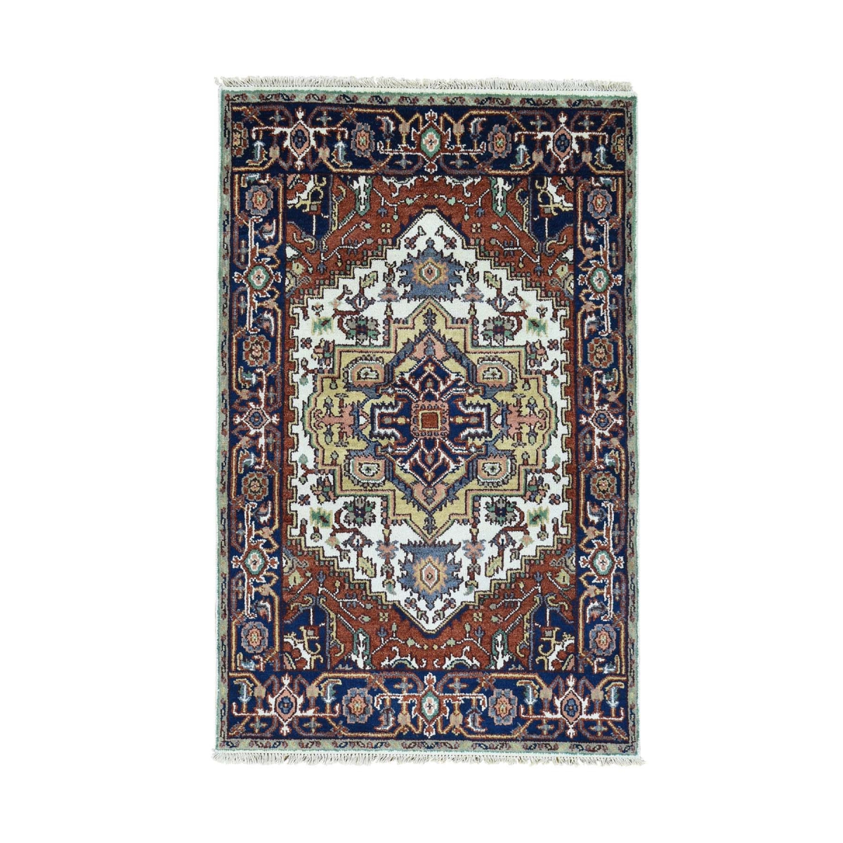 1800 Get A Rug sh31568 3 ft. 9 in. x 6 ft. 100 Percent Wool Hand Knotted Heriz Oriental Carpet Ivory