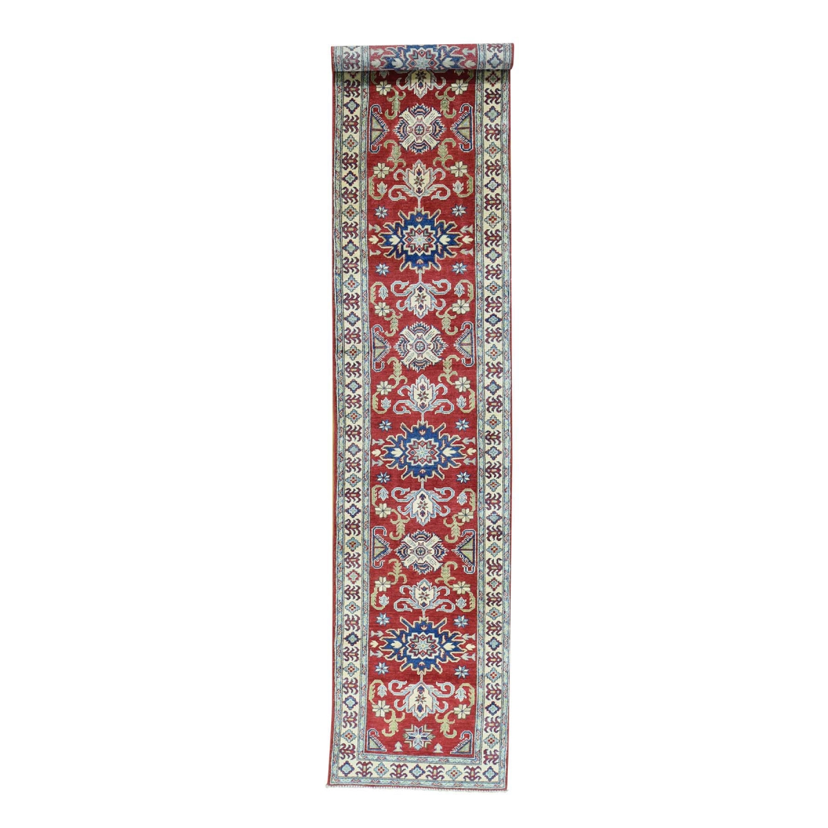 Hand-knotted geometric design kazak red runner oriental rug