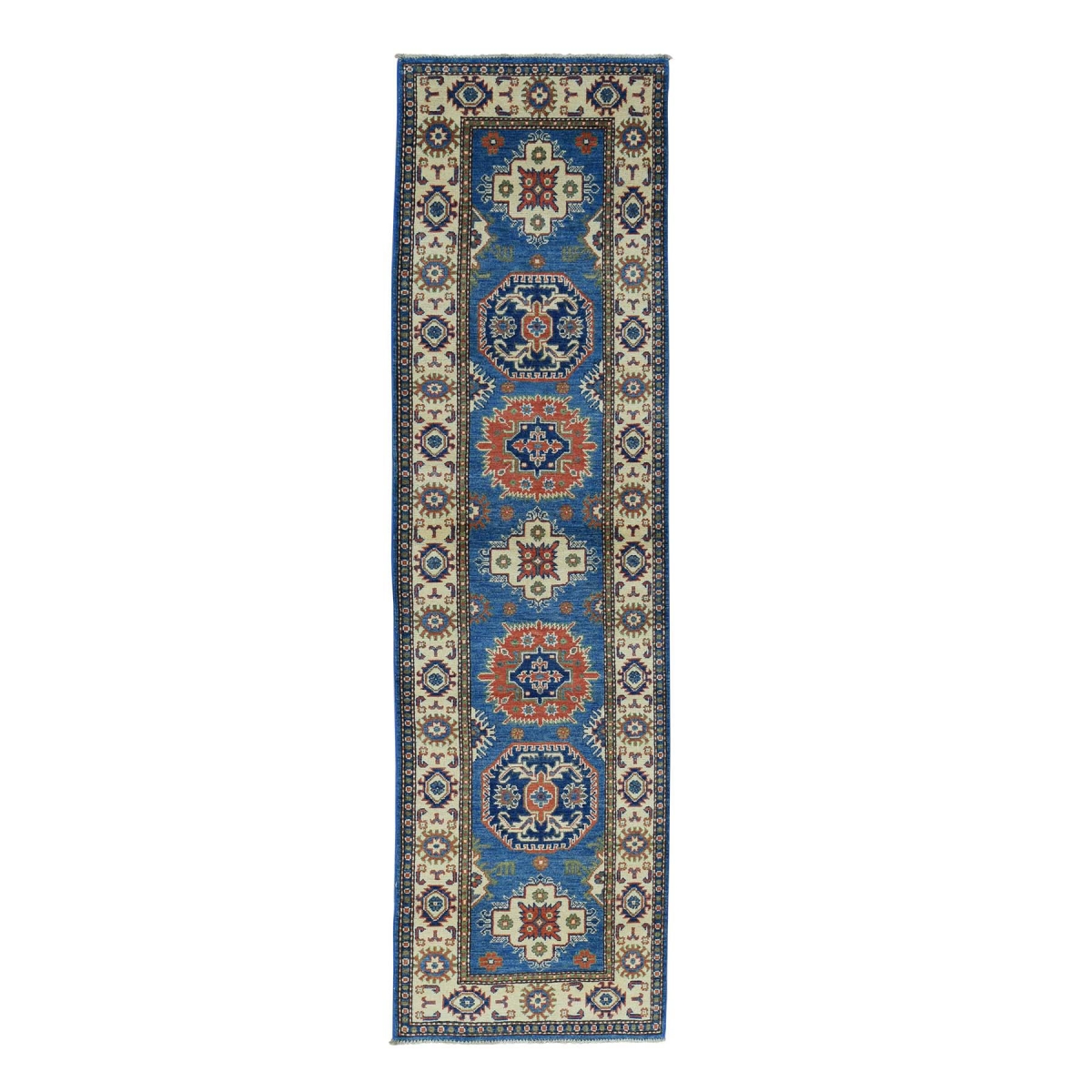 1800 Get A Rug sh31623 2 ft. 8 in. x 9 ft. 6 in. Handmade 100 Percent Wool Geometric Design Kazak Runner Rug Blue