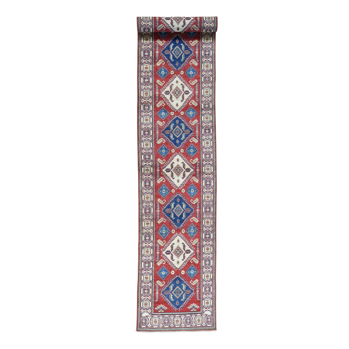1800 Get A Rug sh31651 2 ft. 7 in. x 16 ft. Hand Knotted Pure Wool Runner Tribal Kazak Oriental Rug Red - Extra Large