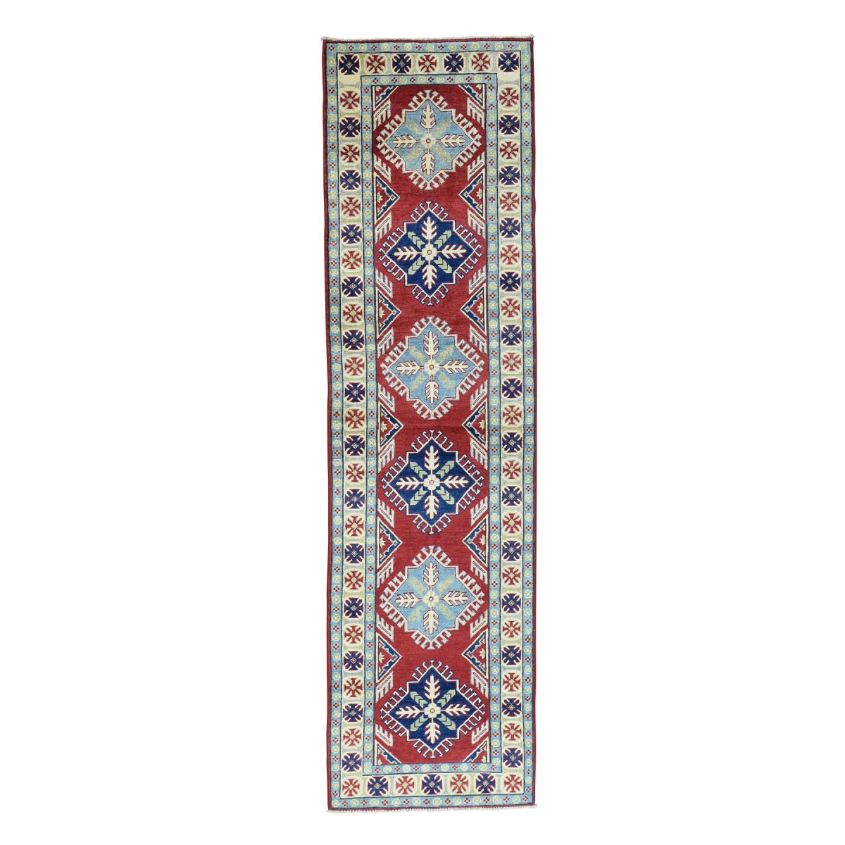 Hand-knotted pure wool red runner geometric design kazak rug