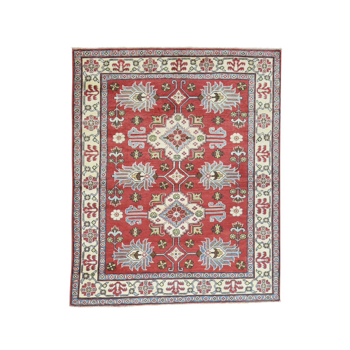 1800 Get A Rug sh31668 5 ft. x 6 ft. 3 in. Hand Knotted Pure Wool Geometric Design Kazak Oriental Rug Red