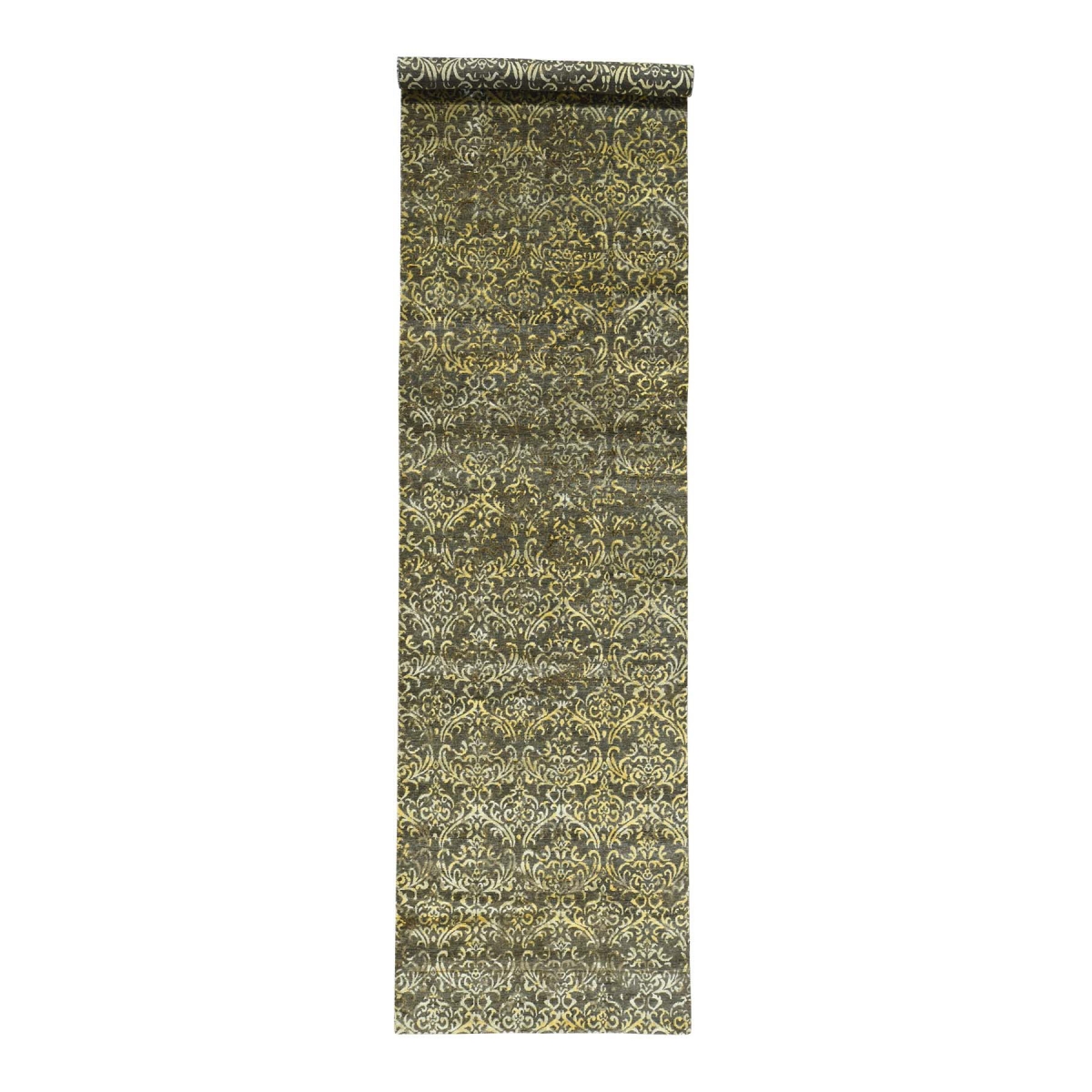 1800 Get A Rug sh31703 4 ft. 6 in. x 18 ft. 3 in. Hand Knotted Tone on Tone Damask Wool and Silk Gallery Rug Brown