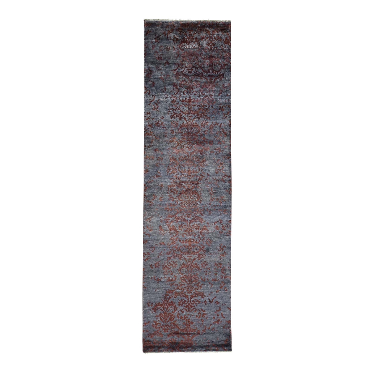 1800 Get A Rug sh31803 2 ft. 7 in. x 9 ft. 9 in. Hand Knotted Tone on Tone Damask Wool and Silk Runner Rug Grey