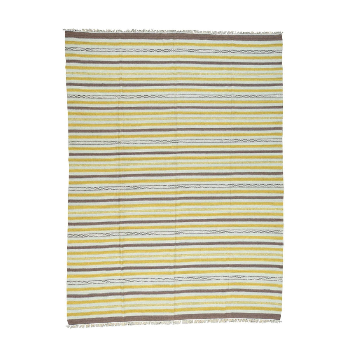 1800 Get A Rug sh31817 9 ft. x 11 ft. 10 in. Hand Woven Striped Flat Weave Pure Wool Durie Kilim Carpet Ivory