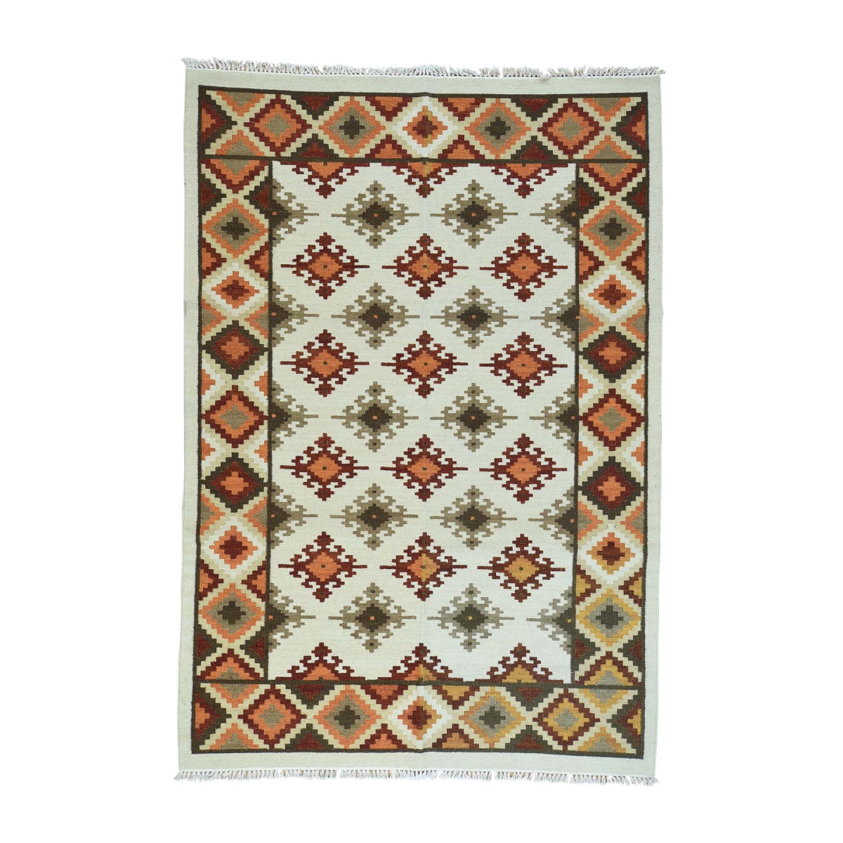 1800 Get A Rug sh31819 6 ft. 2 in. x 9 ft. Hand Woven Pure Wool Anatolian Kilim Flat Weave Oriental Rug Ivory