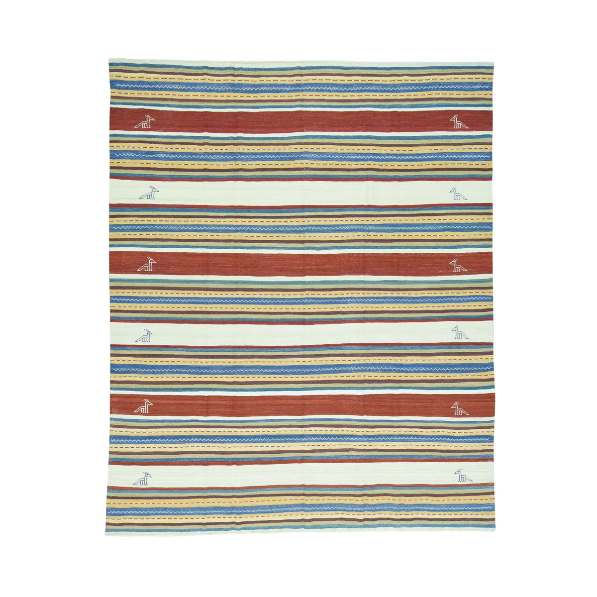 1800 Get A Rug sh31835 8 ft. 4 in. x 10 ft. 2 in. Hand Woven Durie Kilim Pure Wool Flat Weave Striped Carpet Multicolor