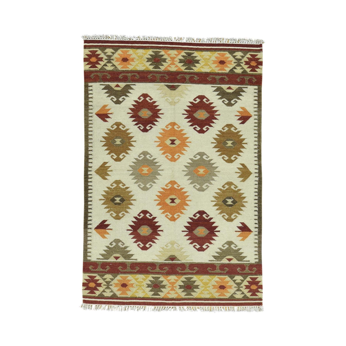 1800 Get A Rug sh31885 4 ft. 1 in. x 6 ft. Anatolian Kilim Hand Woven Pure Wool Flat Weave Oriental Rug Beige