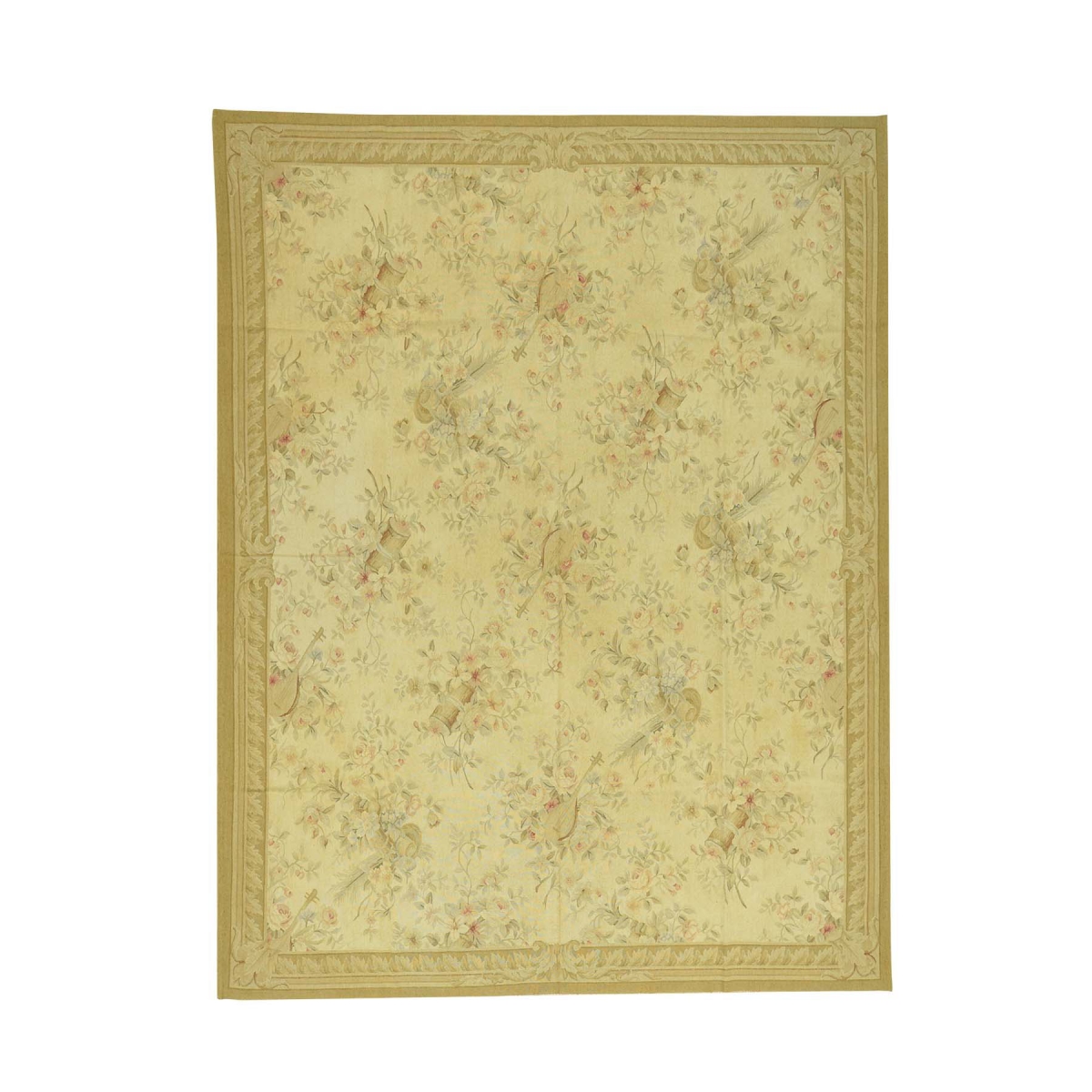 Aubusson tapestry flat weave hand-woven musical instruments rug