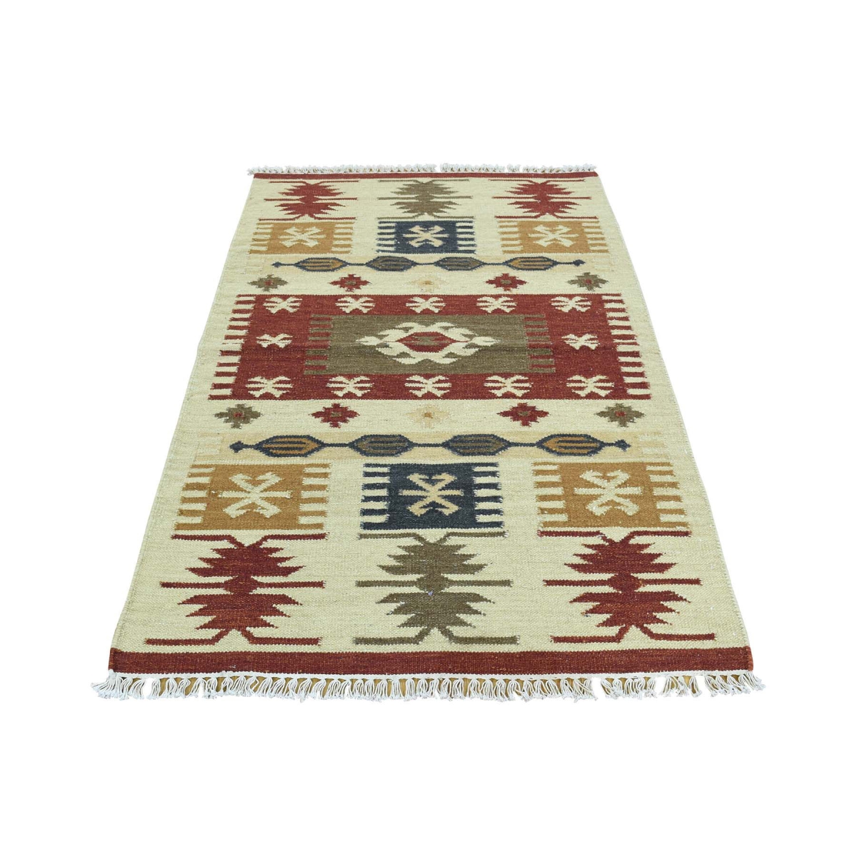 1800 Get A Rug sh31945 3 ft. 1 in. x 5 ft. Hand Woven Anatolian Kilim Pure Wool Flat Weave Oriental Carpet Beige