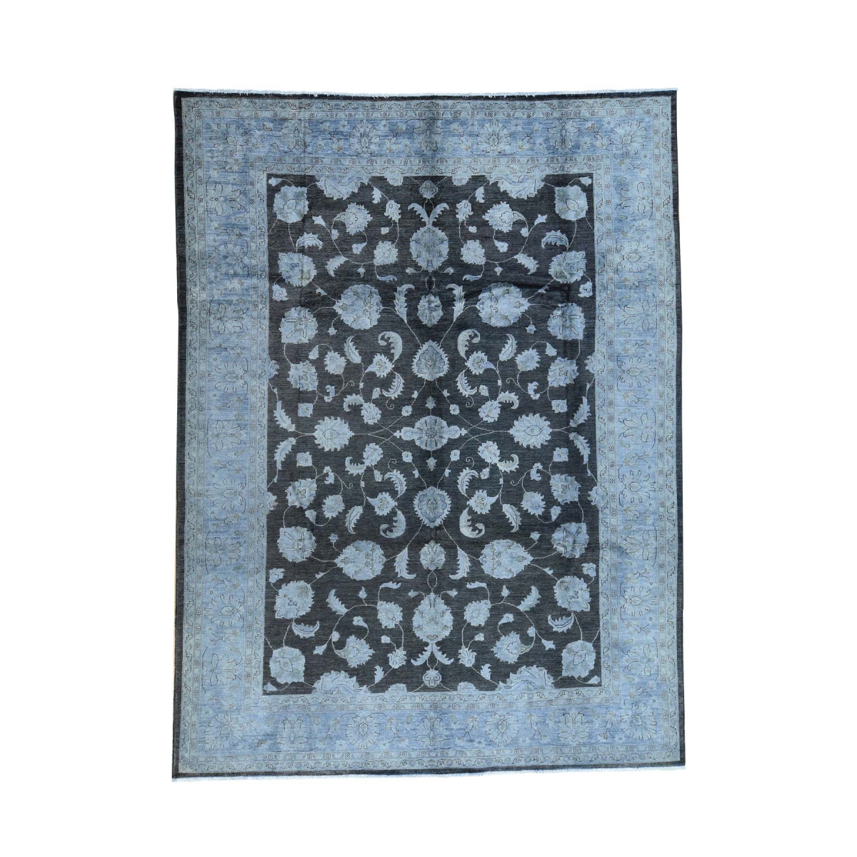Features- Hand-knotted black overdyed peshawar pure wool oriental rug