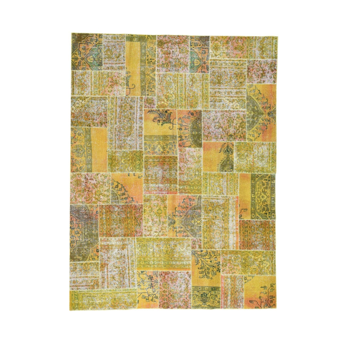 Hand-knotted persian overdyed patchwork oriental carpet