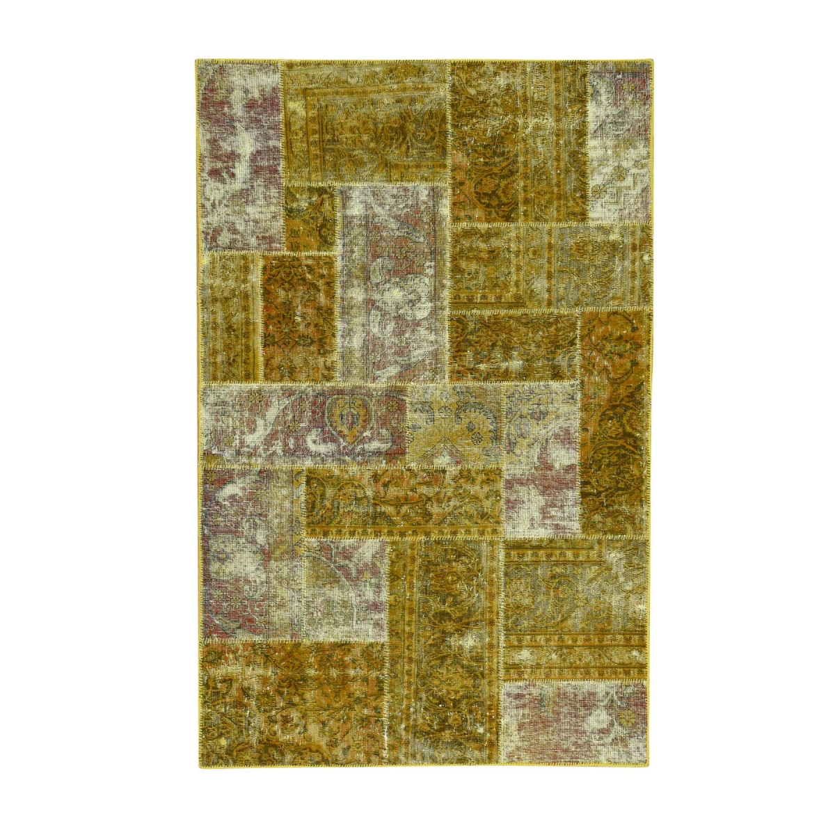1800 Get A Rug sh31976 5 ft. 1 in. x 8 ft. Persian Overdyed Patchwork Hand Knotted Pure Wool Carpet Gold
